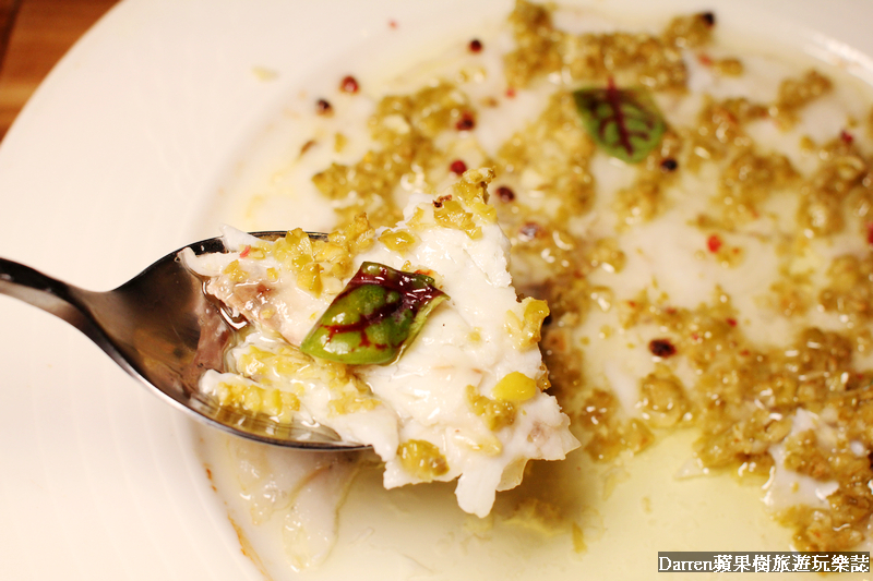 口感細緻層次豐富,其實光是鱸魚變成這樣就超加分,完全不會有魚刺的困擾,而且味道好下飯又適合搭酒唷