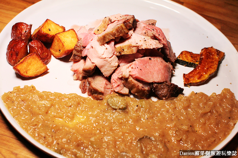 很特別的一道中西混搭料理,吃起來類似雞肉棟的口感,還有種南部粉腸的影子,低溫慢烤的雞肉非常地軟嫩
