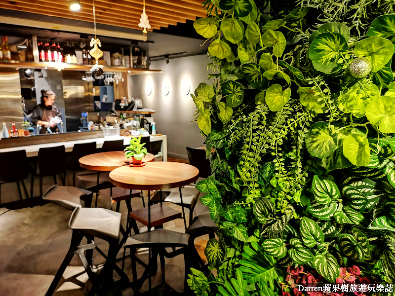 來到火星小廚有種走入都市叢林的錯覺,餐廳內有一大片的花草牆,森林花草設計搭配大量桌椅天花板木頭元素