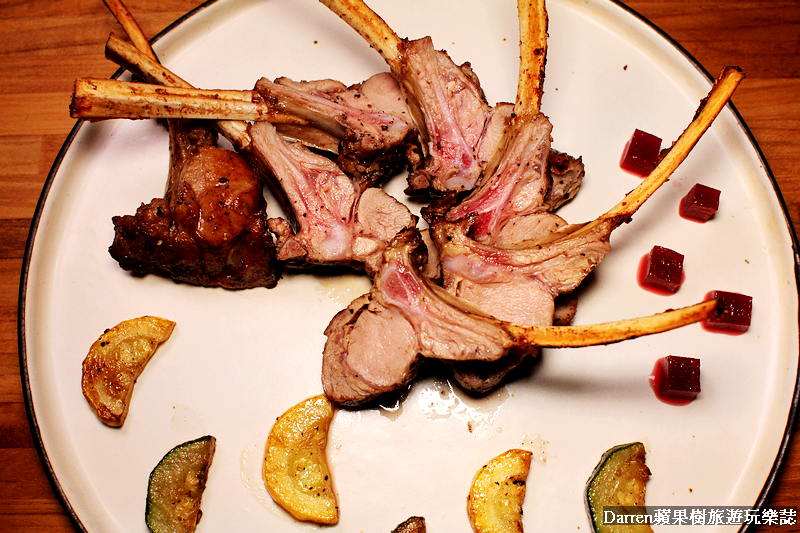 小牛排經過先煎過再下去烤等繁複料理過程,吃起來口感柔嫩加上鮮甜入味很好吃,也能搭配一旁的甜菜根和烤櫛瓜