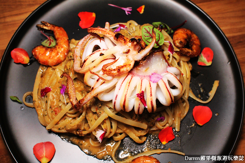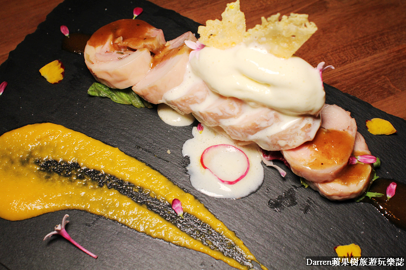 又是道擺盤很美的料理,加上食用花朵同樣好適合花草系風格的店家,這裡的醬汁不是常見的白醬加蕃茄的粉紅醬