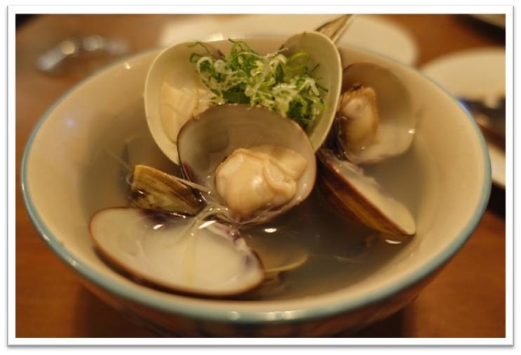 和店裡風格完全不搭嘎的湯.滿滿的蛤犡大概20多顆吧?!點之前還一直問到底是怎麼的作法.店員說是清湯.我以為式義式海鮮清湯那樣…..一上桌! 是"日式"清湯啊!很好喝~但不會是預期西式做法.