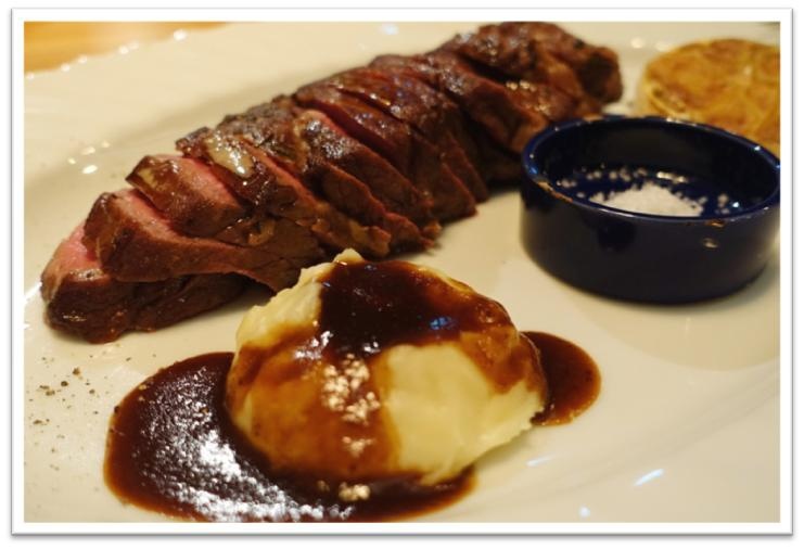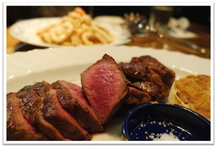 以前我都吃八分熟的牛排,漸漸的才發現五分的牛排才是最精華的時候啊!牛排由外部受熱,熱度漸漸往內.五分的時候可以吃到帶有點硬度的外皮帶些碳烤香.血水肉汁已經鎖在牛排中.