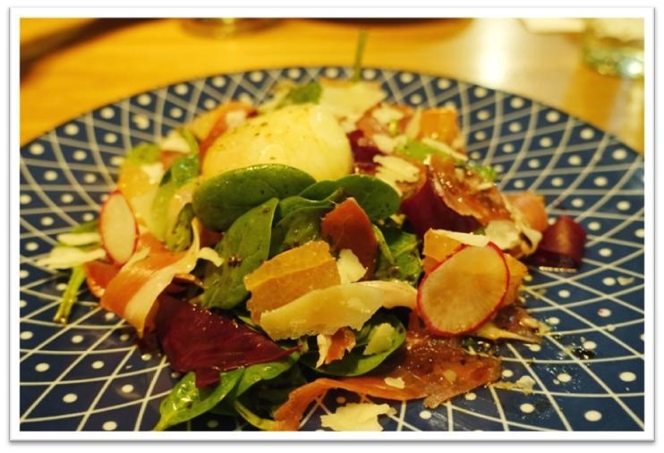 微酸的口味即使沙拉上半了濃郁的蛋汁還是很清爽.葡萄柚很有畫龍點睛的效果不論在口感或是味道上的更有層次.可惜分量真的太少….