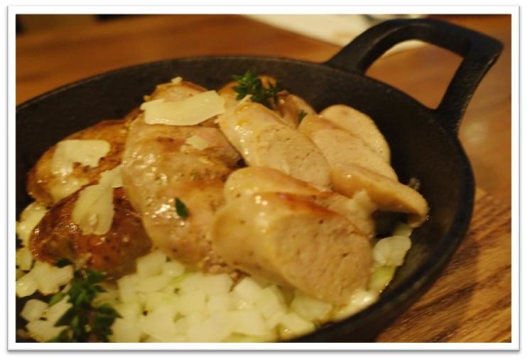 三種香腸的組合. 白腸應該是雞肉.另外兩款是豬牛吧?