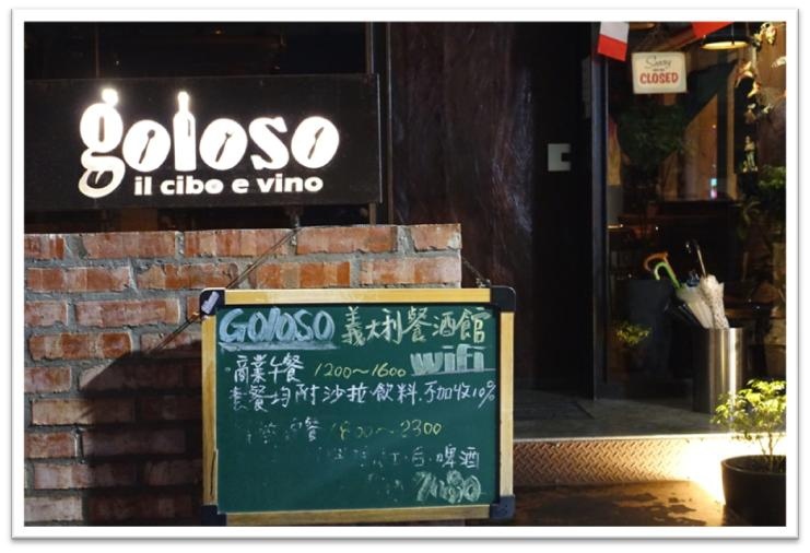 「il cibo e vino」是義大利文,意指食物與酒,Goloso則是貪吃鬼的意思. 很有趣的店名. [一個貪吃鬼的家中有好吃的食物和美酒]