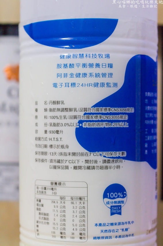 100%成份無調整,鮮乳內的脂肪亦沒調整過,故其不存在低脂鮮乳這樣的品項,喝起來自是醇香且帶有乳糖甜度。