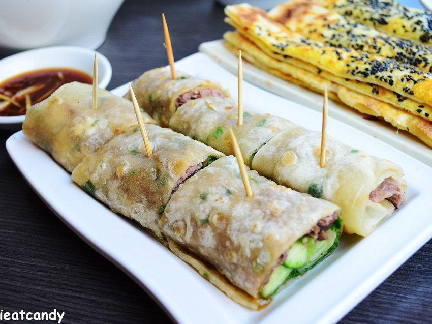 以前就很喜歡牛肉捲餅這項餐點,雖然有點高單價,但為了體恤家人,還是點了下去~沒想到,一入口竟然有越南麵包的既視感,可能因為有小黃光跟香菜的關係吧?(笑) 餅皮Q、牛肉口感也不錯,搭配脆口的小黃瓜,整體挺喜歡的~