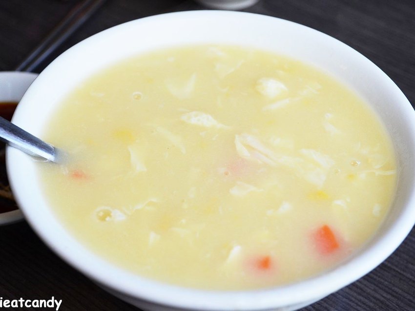 為了小肥肉點的玉米濃湯,送上來也是滿滿一大碗,這對我來說中規中矩,就是普通好喝的玉米濃湯,濃稠湯頭中有許多配料。