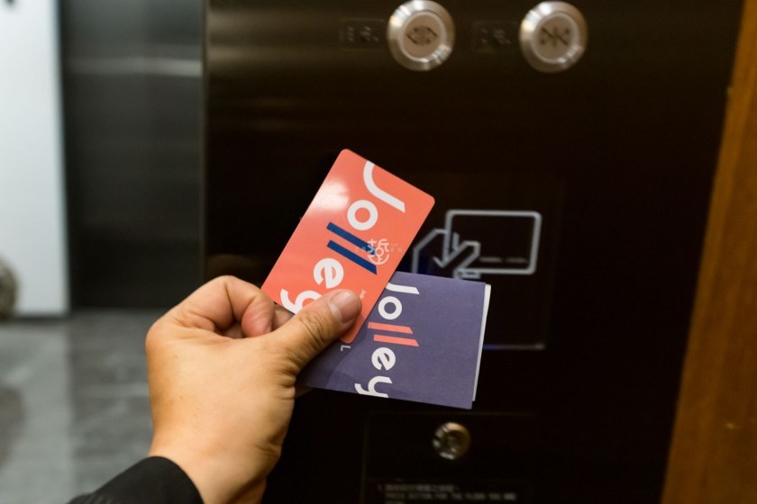 辦完住房手續領完房卡上樓去,電梯的樓層按鈕也是需靠房卡感應才能啟動。