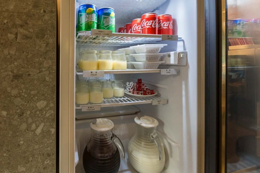 冰箱內有汽水、牛奶、紅茶、起司塊鮮奶酪與布丁,竟然還有納豆。