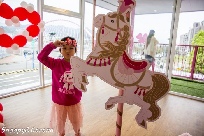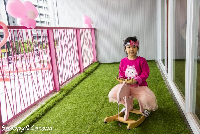 小陽台舖設了假草皮還放置了小小的搖搖馬,也是很適合帶小小孩來拍照。