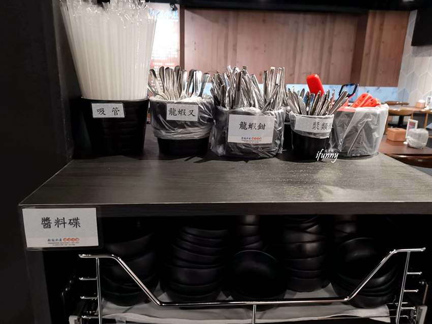 餐具也是自取的,若有點海鮮類的食材,這裡也有工具可取用。