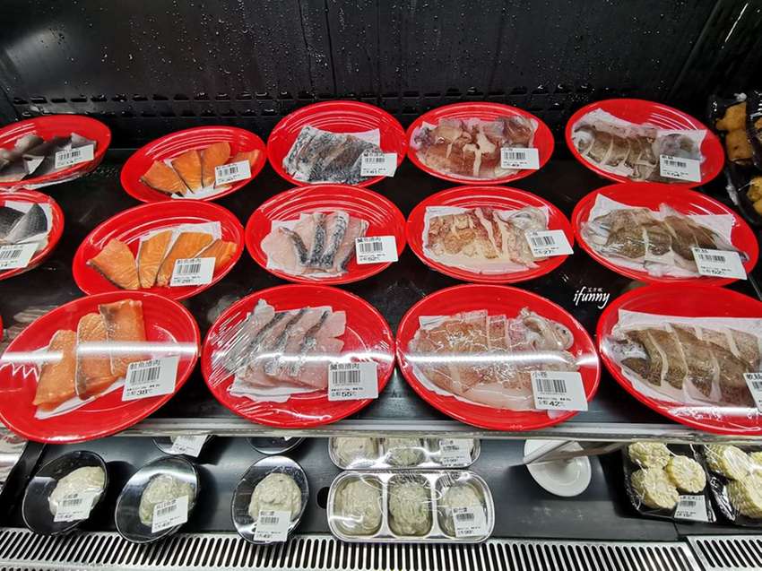 在冷藏櫃一盒盒的是已標好價,這邊的海鮮則是以隻/個或秤重計價。