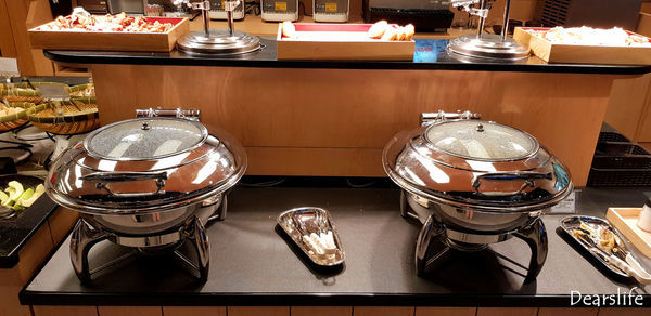 中間的自助區,一櫃為蔬食區、一櫃為熟食區,而左邊的自助區則陳列各種飲料。