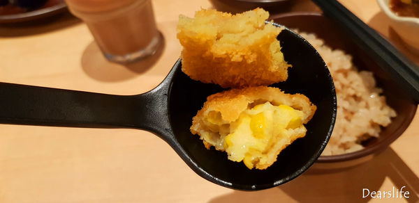 有一些炸物,像是玉米可樂餅,但吃起來...你知道的,我們是來吃肉,不是來吃炸物的。