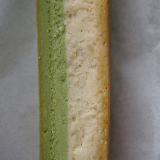 *抹茶香氣很重,口味是帶點苦味,但是卻與起司好搭!!!配色也很漂亮,下次讓我買我會選擇這款送人。