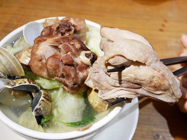 這款湯品裡面有滿滿高山高麗菜、蛤蜊以及超大塊雞肉