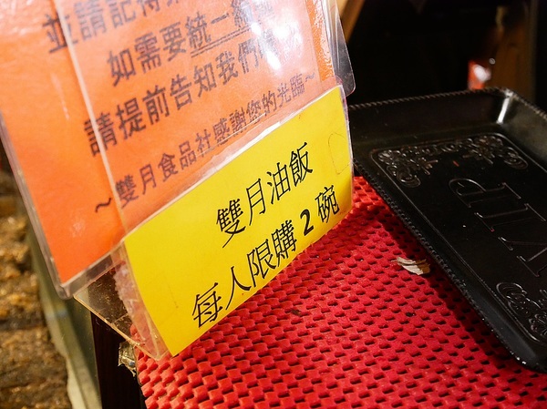 店家的雙月油飯很熱銷 因為每日限量 所以每人限購兩碗