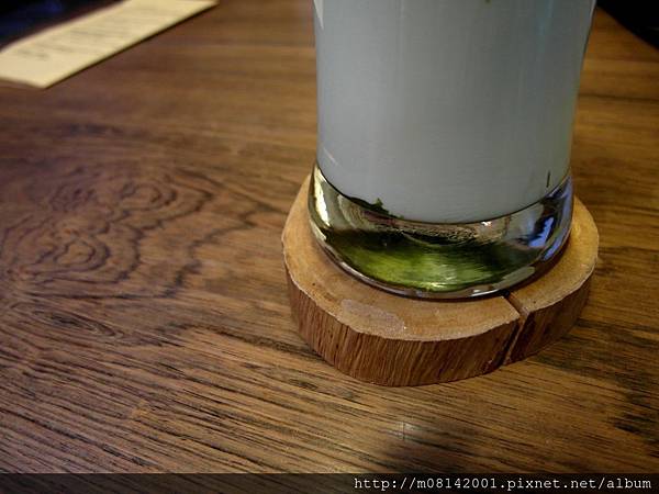 滿滿一杯的牛奶,不看底部還真看不出來這是一杯抹茶牛奶XD