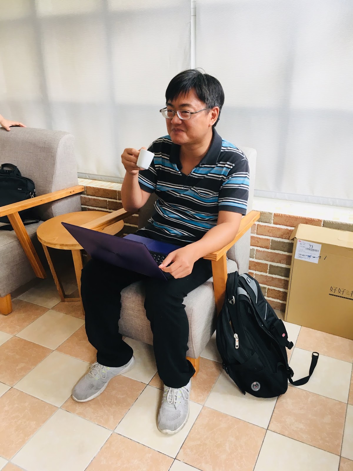老公原本在行前跟我說要趕著工作,沒辦法加入我們的討論,但喝了Rick沖泡的「衣索比亞娜塔妃」後,溫潤順口的咖啡竟引起他這個科學家的興趣,主動和Rick了解精品咖啡的各種知識,還表示和他們做實驗很像,要控制各種變因來產出不同的結果,覺得非常有趣。