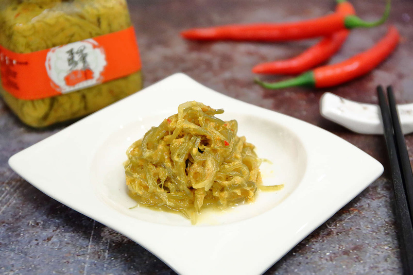 口感清脆爽口,滋味微酸微辣清甜,吃上一口保證上癮