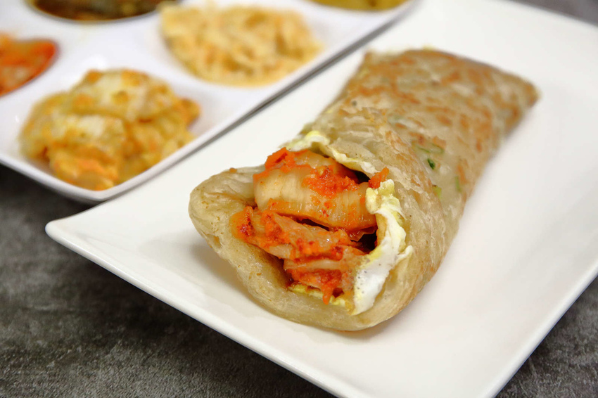 捲進驛の泡菜+蛋,蔥抓餅不用調味醬就很好吃