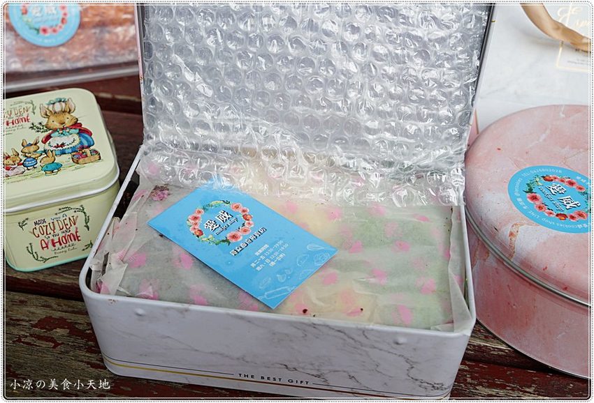 鐵盒內放入氣泡墊更能保護餅乾不易碎掉、很貼心的小舉動