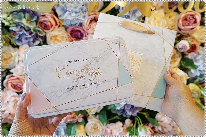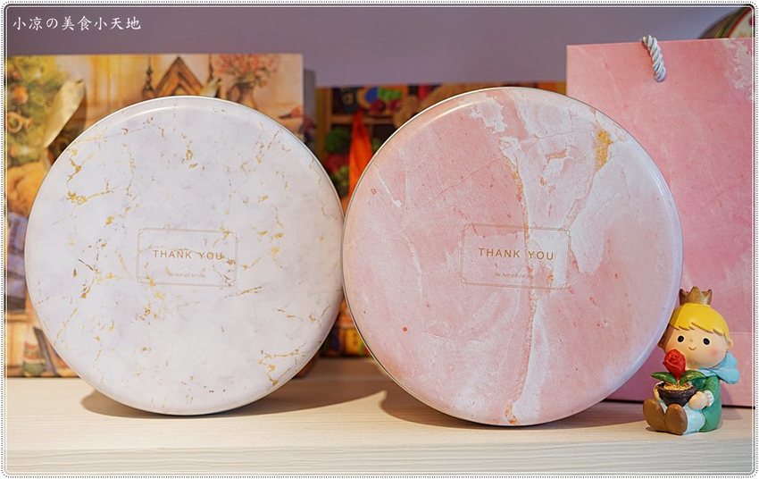 這一款粉嫩幸福的大理石鐵盒小凉超愛,不只是送禮好看、鐵盒子的質感更是替曲奇餅加分不少