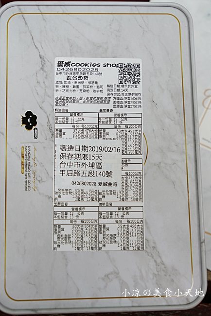 鐵盒底部都會貼上曲奇餅的成份、營業標示、製造日期、有效期限15天等標示