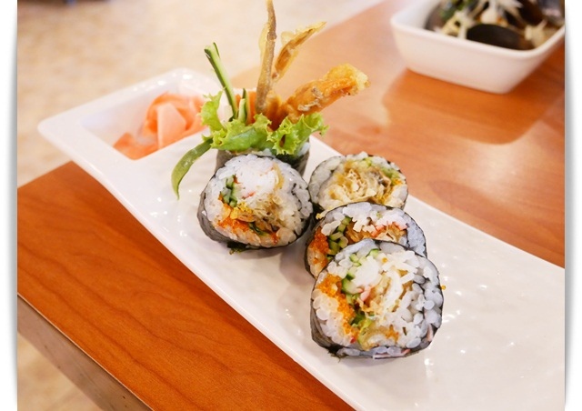 壽司包著炸軟殼蟹,搭配壽司裡的蔬菜酥脆不油膩。