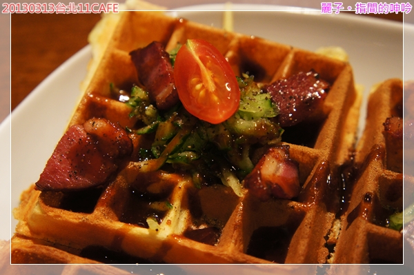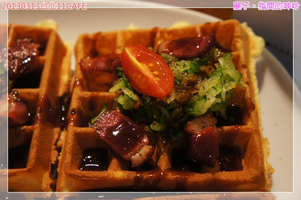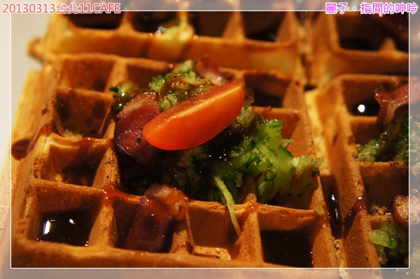 鋪在剛烤好的鬆餅上,淋上了鹹鹹甜甜的醬汁~光是畫面就很吸引人啦。