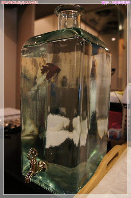 吧台上有個這樣的玻璃瓶,應該是飲水瓶,仔細看裡面竟然有一條魚?