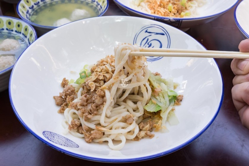 這碗肉燥麵是輕輕辣,獨家炒製的辣油拌著Q彈的拉麵,油蔥肉末香味撲鼻,口感非常好。