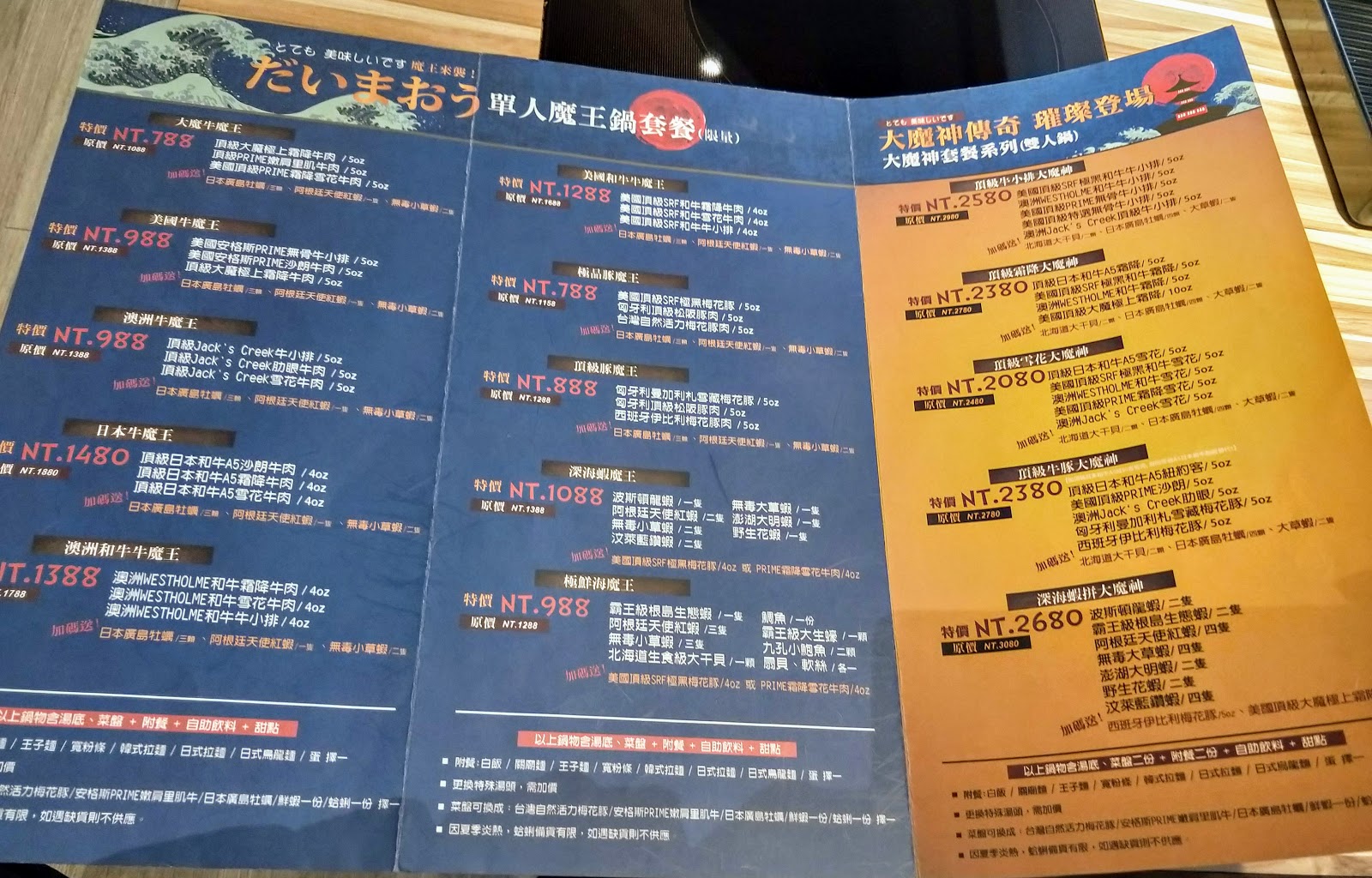 大魔大滿足鍋物有提供單人套餐與雙人套餐,