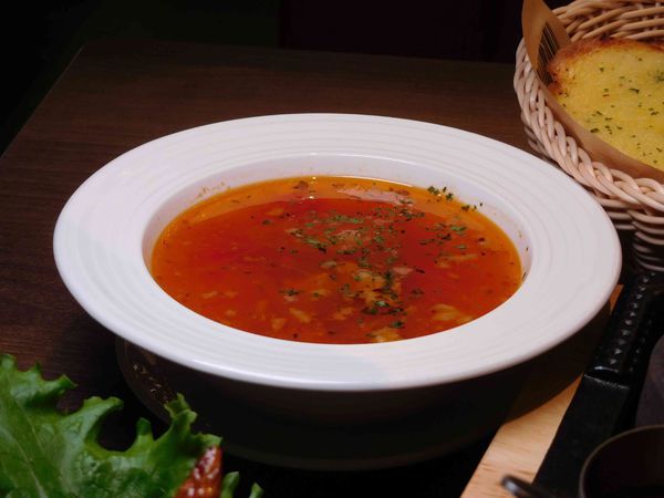 主廚招牌湯品以羅宋湯為主 ,內有牛肉 番茄 紅蘿蔔 馬鈴薯 蔬菜