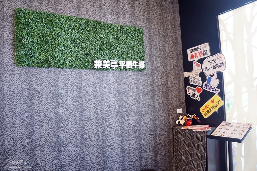 兼美亭平價牛排餐廳內部是微工業風格,每個角落也都有小小巧思,高挑的空間、明亮的光線,一點也不輸給高級的排餐餐廳呢。
