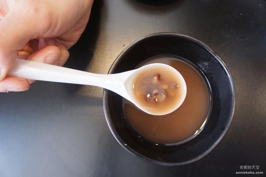 吃完正餐後,可別忘記到自助吧喝碗熱呼呼的紅豆薏仁甜湯,湯頭甜蜜濃醇,甜甜的喝下肚好滿足。