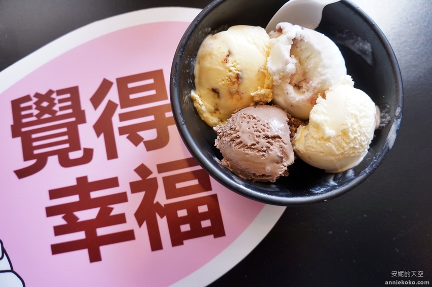 四種口味的冰淇淋也好好吃,藍莓、巧克力、香草與彩虹布丁口味好濃郁喔,不太吃冰的我一整碗吃光光,冰的品質好濃好香超乎我預期呢。
