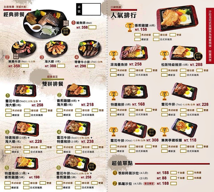 兼美亭平價牛排菜單