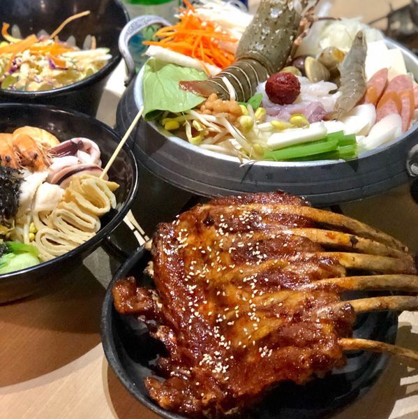 內含鍋物一份、主食一份、前菜一份、湯品一份、麵包三顆、飲料三杯