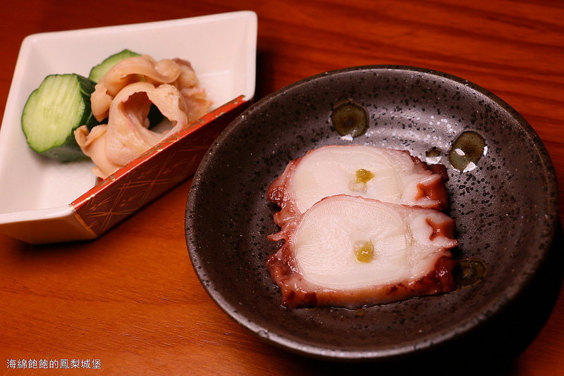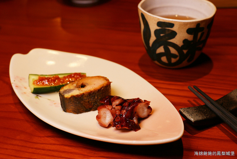 前菜內有三樣,章魚腳、香魚、味噌小黃瓜