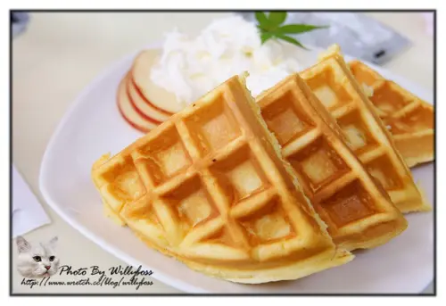 店家自製鮮奶油,不會太過甜膩,沾著鬆餅吃很搭喔!整體來說算是個好吃的鬆餅。