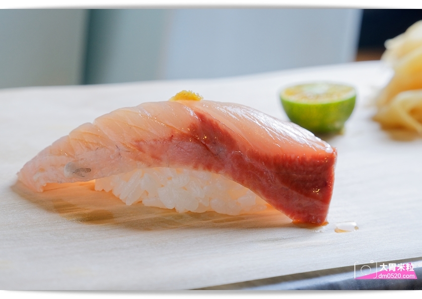 一貫的部分則是切成兩半,一入口可以吃到厚實軟綿的魚肉,