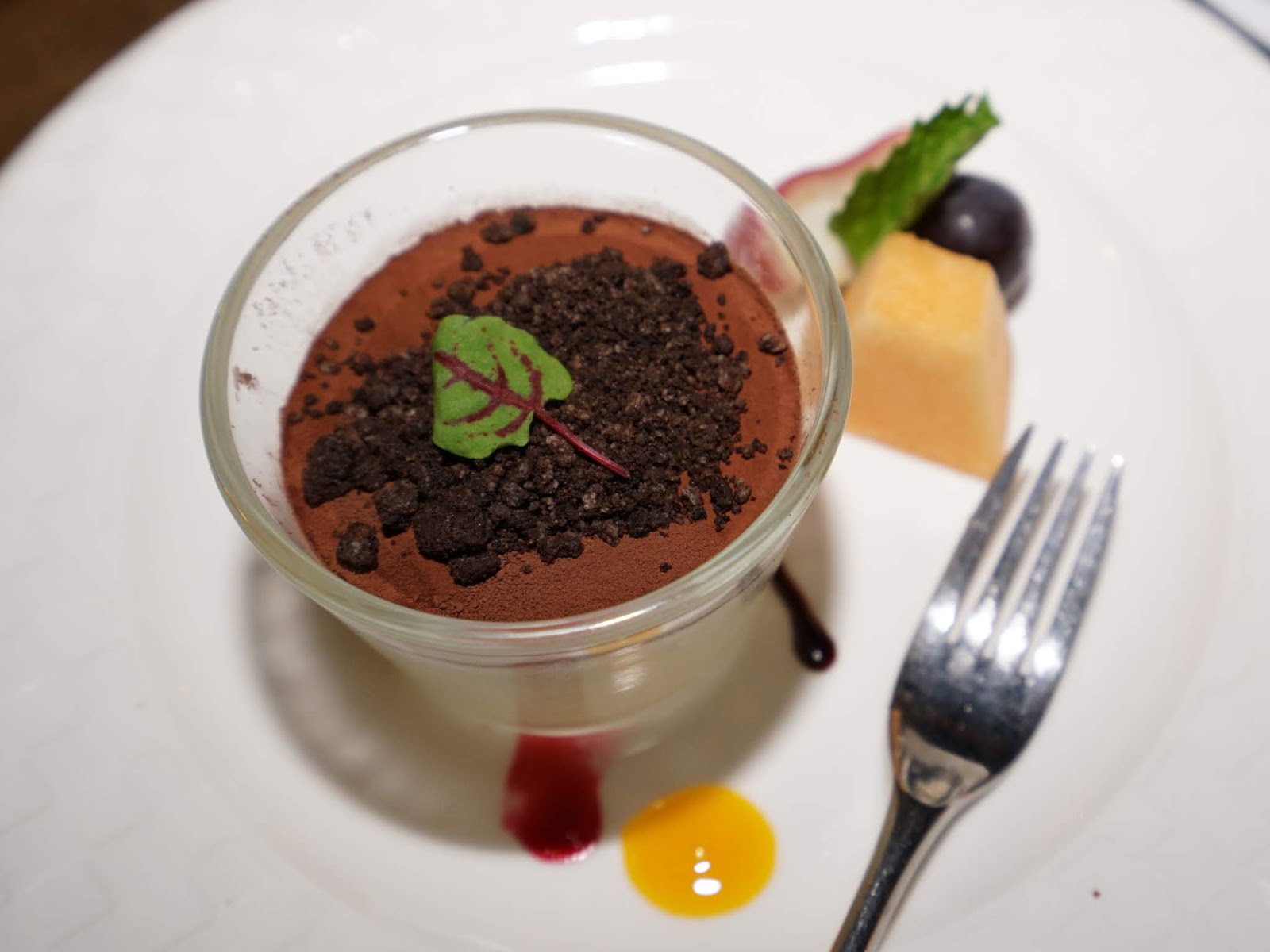 最後還有這道野菇起司燉飯,以牛肝菌菇煮成的醬汁加入生米在鐵板上現場熬煮而成,子套餐還會再綴上金箔,如果是商業套餐就沒有金箔裝飾,但味道一樣好吃!