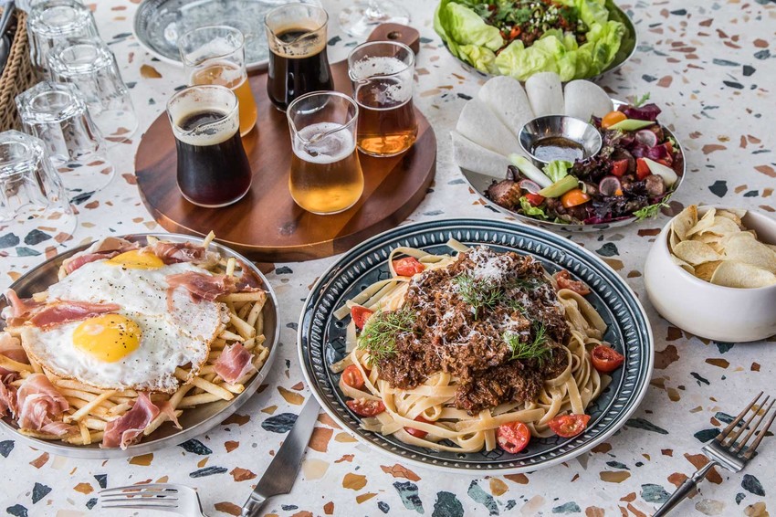 咚咚咚,不一會兒功夫菜都上桌囉,因為是以啤酒為主打的餐廳,棧酒食吧 SIP Gastrotaphouse的菜色口味上設定會比較重,比較適合配酒,但料理品項相當多樣化,從前菜沙拉、主食甜點,吃飽吃巧任君選擇