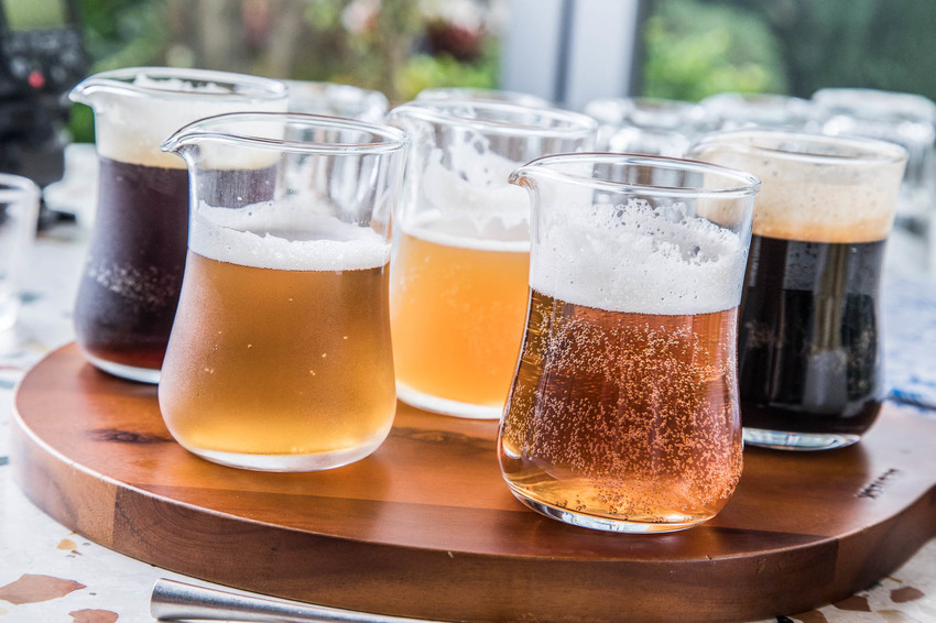 如果想一次喝多款啤酒的,點精釀啤酒套組,五種類的精釀啤酒,每一杯是100cc左右,同時也會附上兩個小杯子可以分著喝,相當是姊妹淘或是情侶點一組(喝酒不開車,開車不喝酒,未成年請勿飲酒)