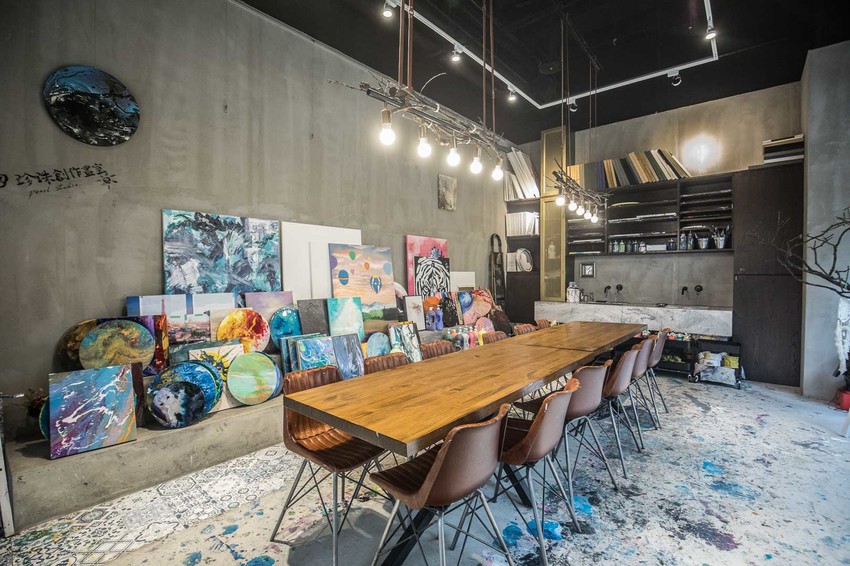 最後方還有圓桌區跟包廂區,包廂目前跟珍珠創作室合作,有的時候是珍珠創作室課程使用,所以包廂中有許多畫作,