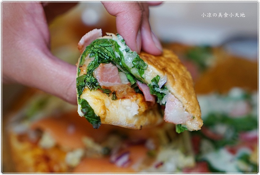 餅皮是屬於薄皮的,建議吃時把尖角處往內折,這樣吃可以吃到麵團又Q又蓬鬆的口感