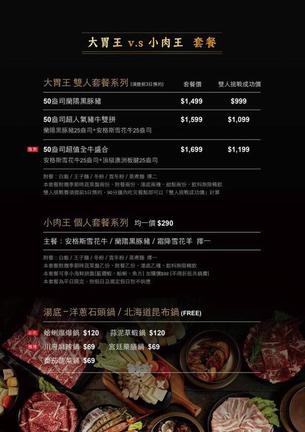 MENU先選湯底再選主餐,新增大胃王及小肉王套餐